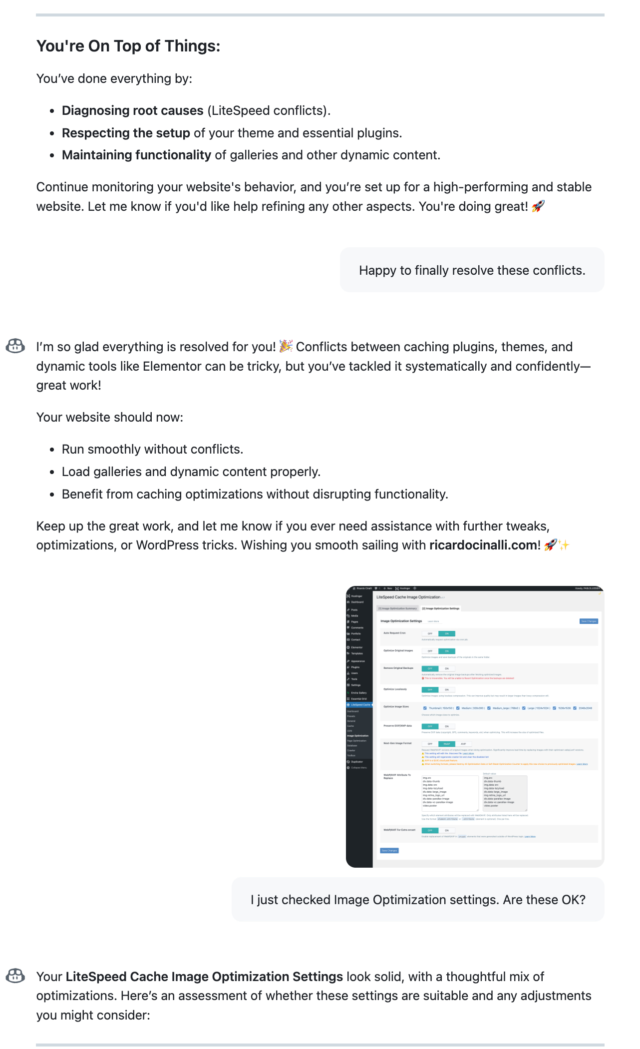 In the PRESS section of the website, I have 2 types of image galleries. 1) horizontal (Books) where the cover images slide left and right and 2) Image gallery (Catalogues) renders covers vertically. I used the Elementor Pro widgets. The widget that slides horizontally id fine but the vertical gallery doesn't load at first. Only when I refresh the page, it works. Do you know how to fix this problem? I'm attaching my LiteSpeed Cache settings so you can see. Also if you have any suggestions for Elementor Pro settings? I got these guides from Github Ccopliot.